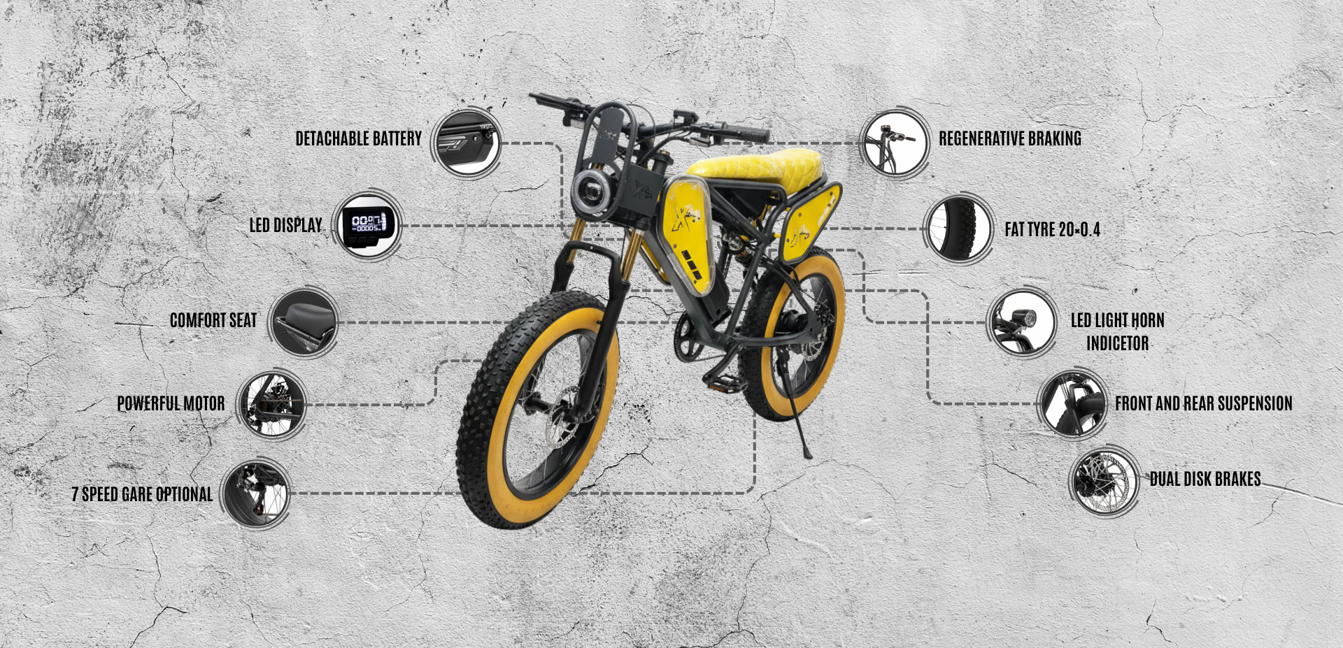 Vigor X45 Electric Cycle with Dual Disc Brakes, 350w Hub Motor, 18.5Ah Li-Ion Battery, Throttle with Battery Indicator, 95% Pre-Assembled with Charger, Black Color,Fat Tyre,Charcoal Grey Yellow